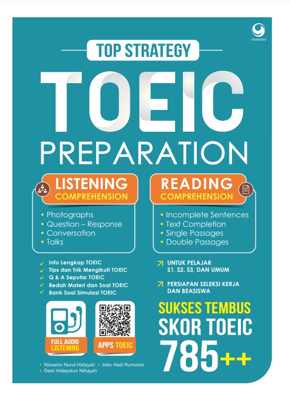| Judul | TOP STRATEGY TOEIC PREPARATION : LISTENING COMPREHENSION READING COMPREHENSION / NISWATIN NURUL HIDAYATI |