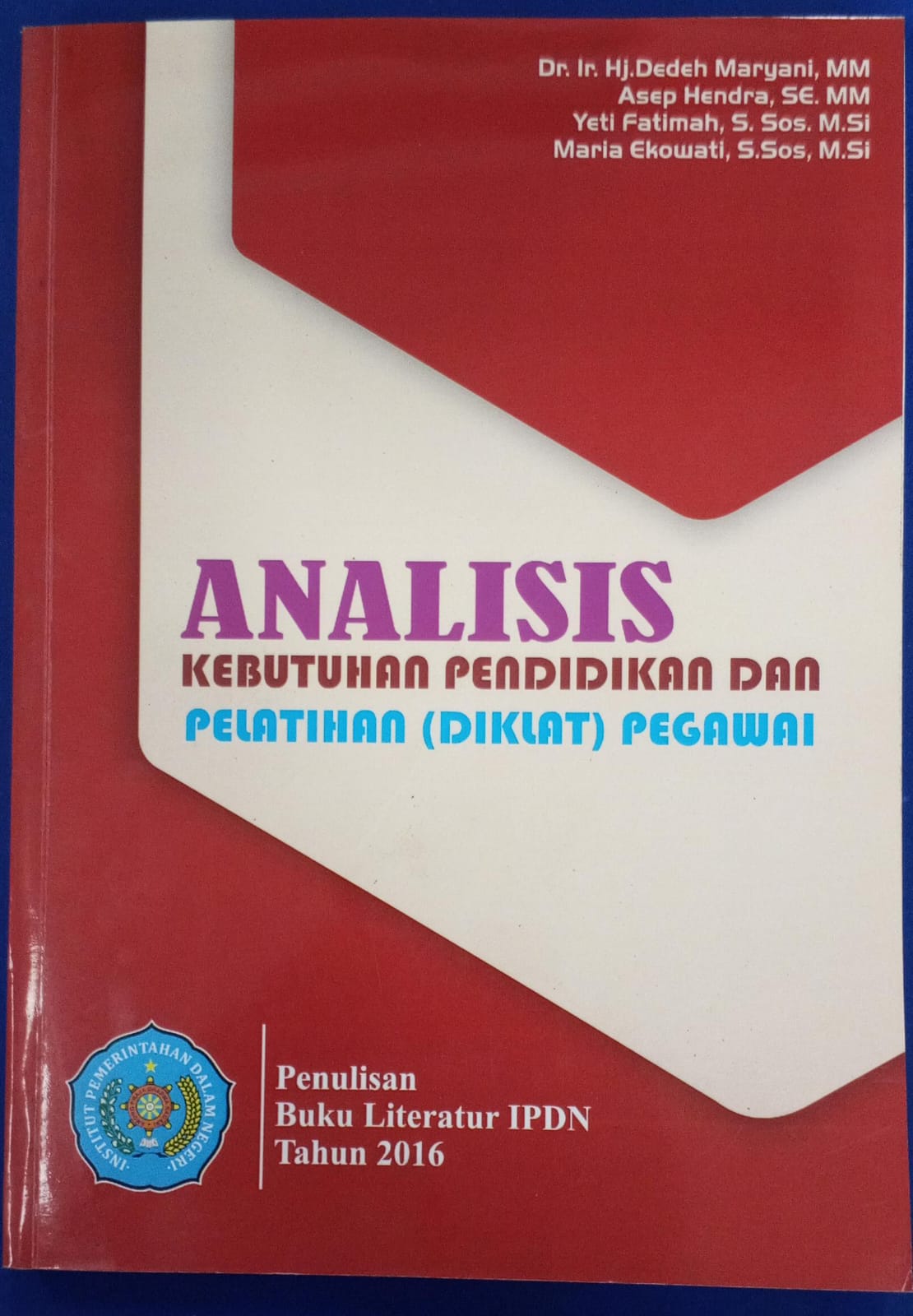 | 245 | 1 | # | $a ANALISIS KEBUTUHAN PENDIDIKAN DAN PELATIHAN (DIKLAT) PEGAWAI : $b Buku Literatur IPDN Tahun 2016 /$c DR. IR. HJ. DEDEH MARYANI, MM |