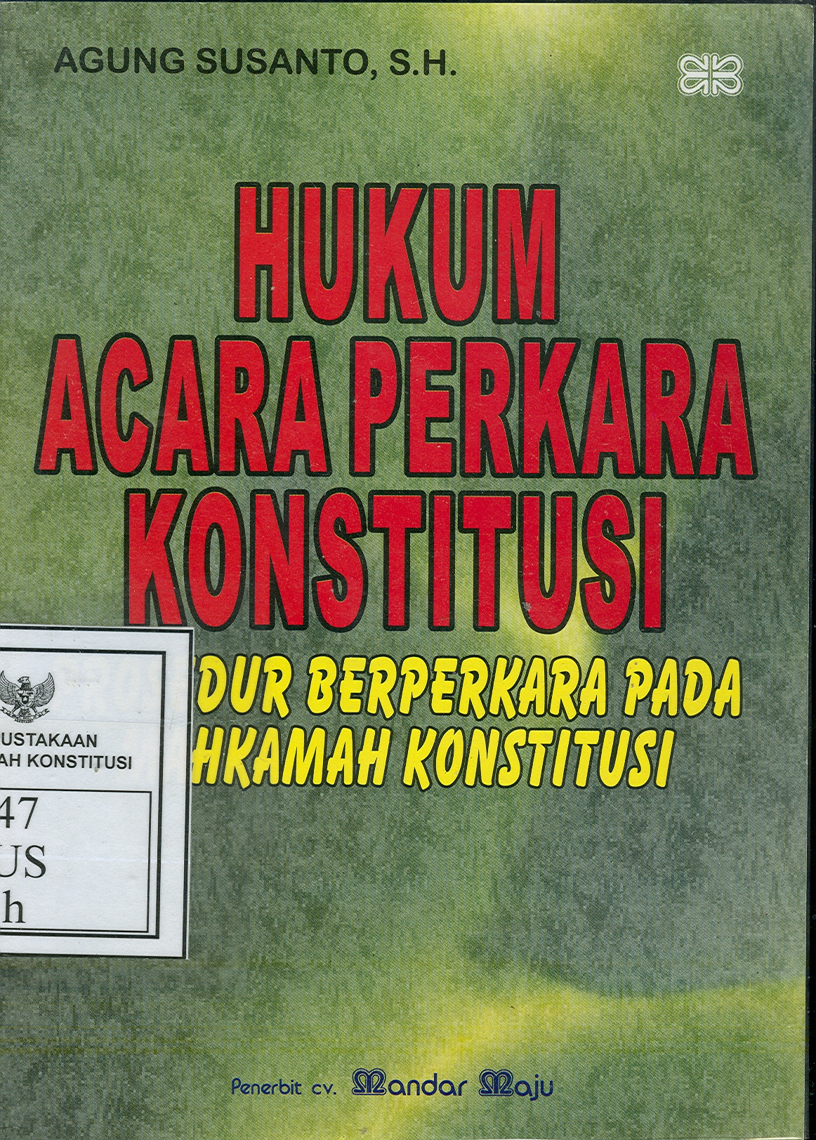 | Judul | HUKUM ACARA PERKARA KONSTITUSI : Prosedur Berperkara pada Mahkamah Konstitusi / AGUNG SUSANTO, SH |